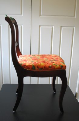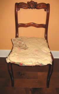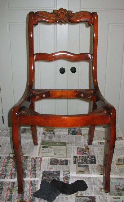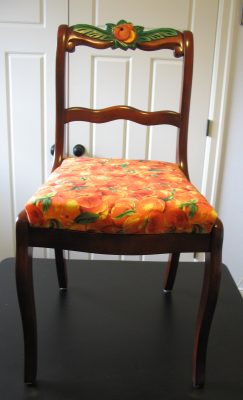 I'm really hesitant to paint over the beautiful finish on this chair, I grew up visiting very similar chairs in my grandmothers house in Michigan, which is what drew me to select this chair in the first place.